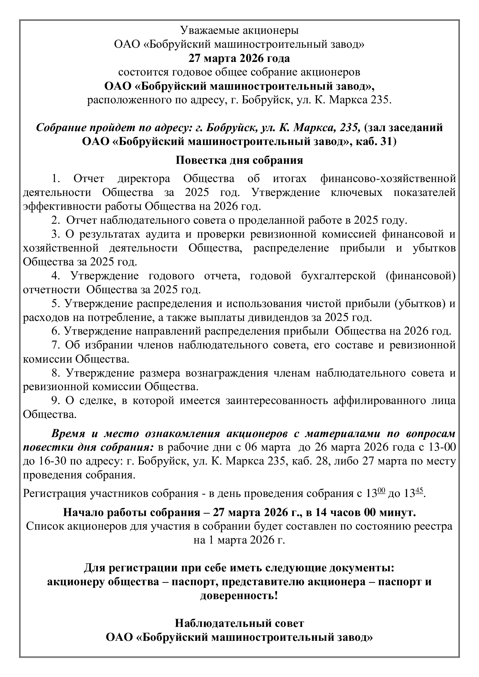 Ключевые факты о ОАО «Бобруйский машиностроительный завод»: